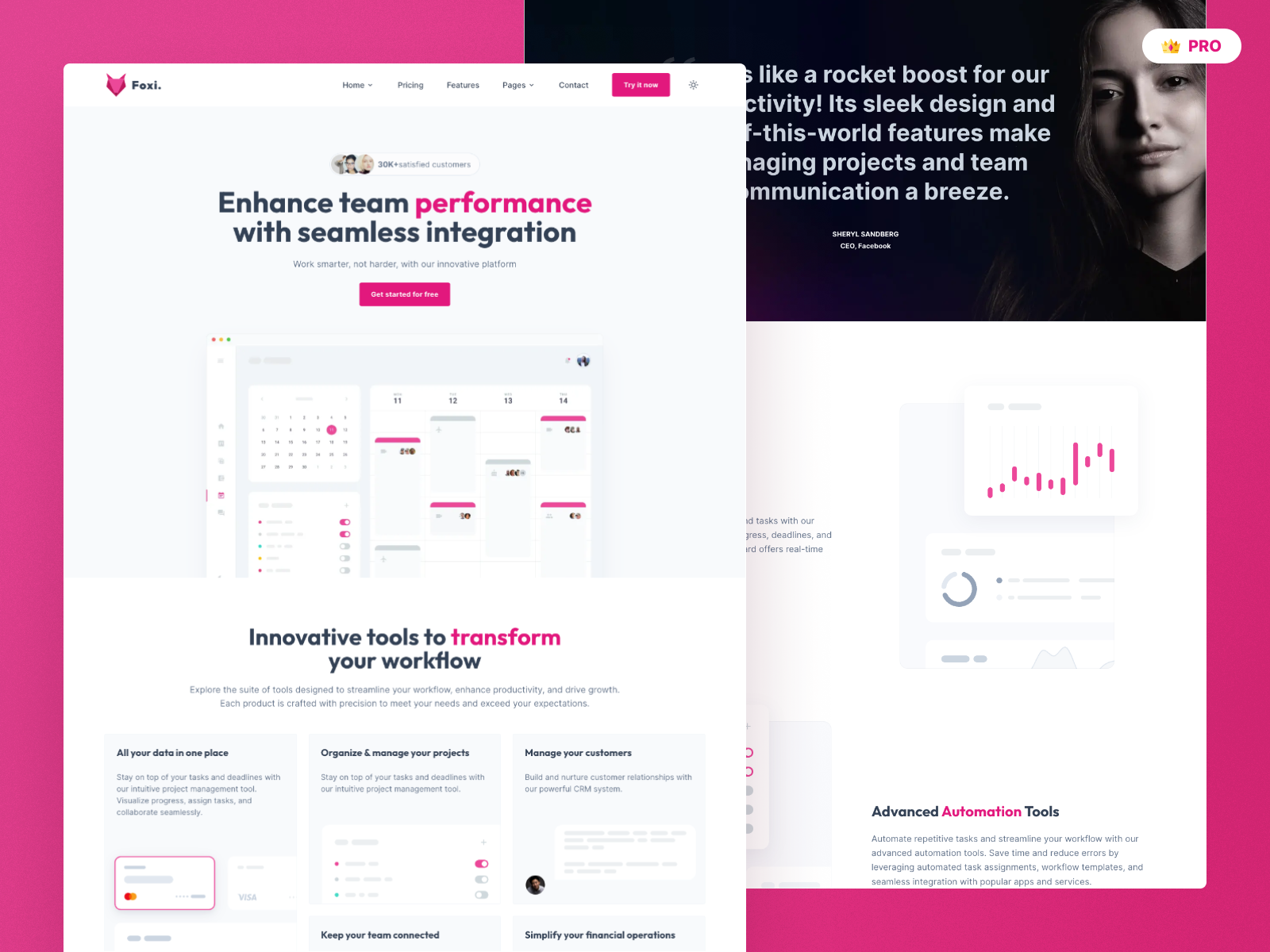 Foxi Pro: A premium Tailwind CSS template with perfect PageSpeed, SEO optimization, light/dark modes, responsive design, and pre-built pages for fast, customizable development.